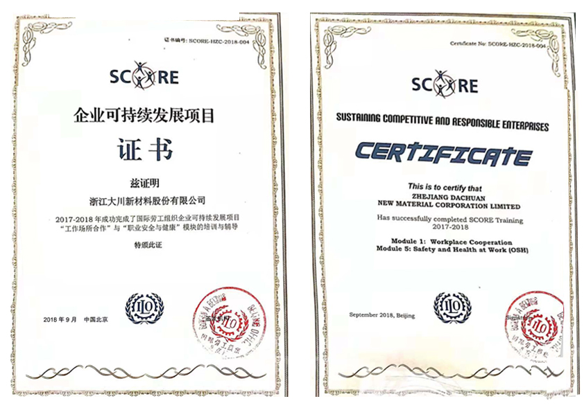 2015年被評(píng)為中國(guó)質(zhì)量信用AAA級(jí)單位 2015年12月,通過(guò)了歐盟REACH認(rèn)證 2015年度公司申報(bào)了16項(xiàng)實(shí)用新型發(fā)明專利已獲得9項(xiàng)證書(shū),7項(xiàng)發(fā)明專利初審已經(jīng)通過(guò)。 |