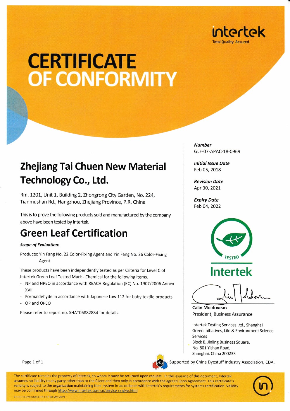 公司相關(guān)部分產(chǎn)品擁有Intertek綠色證書(shū)。