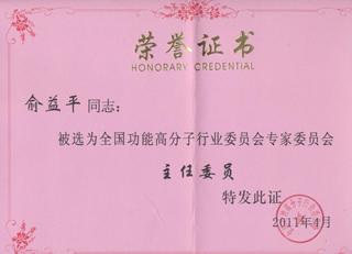 • 全國功能高分子行業(yè)委員會在2011年4月19日在宜昌市進行專家委員會改選,杭州銀湖化工有限公司當選為”全國功能高分子行業(yè)委員會委員單位”。